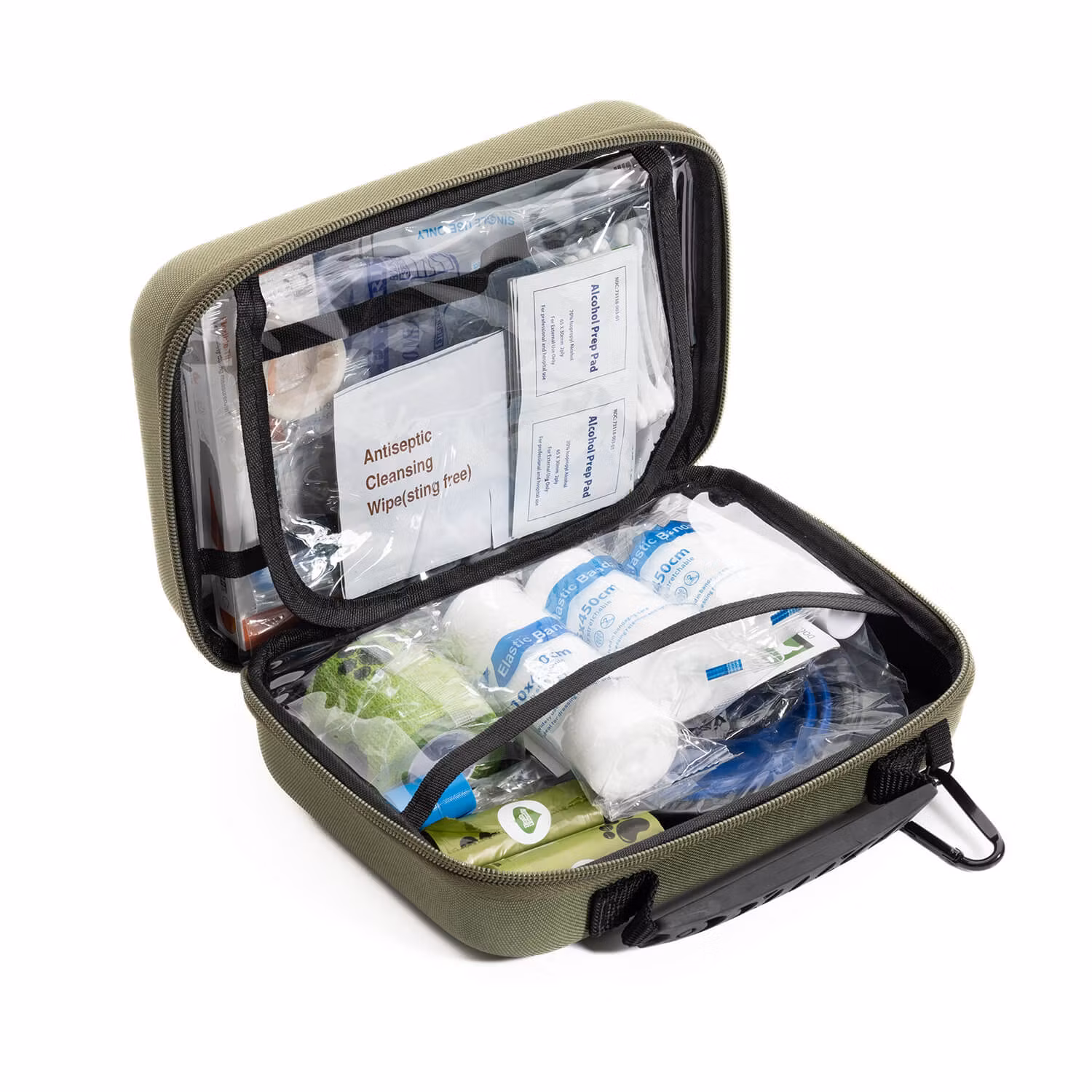 Førstehjælpskit til din hund eller kat med alt, du behøver for hurtigt at behandle små skader og give din pelsede ven tryghed – hjemme, på tur eller på rejsen.