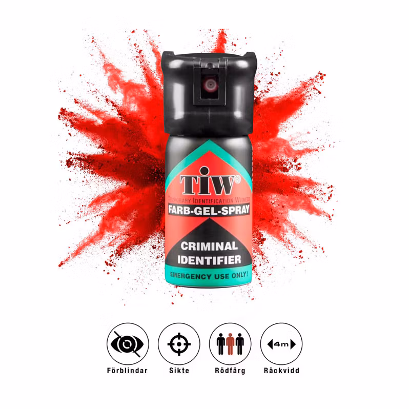 Forsvarssprayen giver mulighed for at holde afstand i en truende situation. Sprayen har lang rækkevidde og indeholder rød farvemarkering, som gør det lettere at identificere en person efterfølgende. Den gelbaserede spray giver høj præcision og reducerer risikoen for påvirkning fra vind.